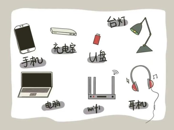 4、电子产品:手机、充电器、数据线、充电宝(注意:严禁携带违禁物品,电饭锅、热水壶、卷发棒等大功率电器。)