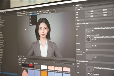 在相芯科技的办公室,电脑屏上展示着各式各样的数字人。有的脑袋大大、眼睛圆圆,表情夸张、动作灵活,那是“卡通数字人”;有的身着制服、双手自然交叉,那是“全真数字人”。