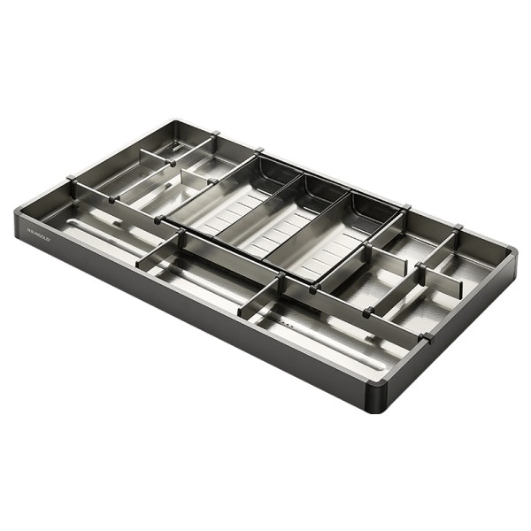 悍高(HIGOLD)厨房橱柜工具拉篮的设计理念是空间优化,智能收纳。它通过可调节的分隔档条,将整个橱柜空间进行合理划分,充分利用每一寸空间。无论是宽大的锅具,还是玲琅满目的调料,您都可以轻松整理,让厨房看起来整洁有序。
