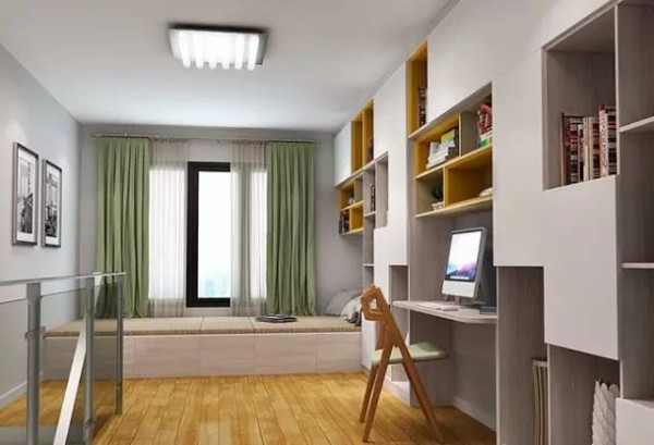 许多小户型,一般都有一个10㎡左右的房间,几乎每一位业主都为这样的小房间犯过愁。我们知道,在一个稍大一些的房间,如果同时满足休息、读书和储物等多重功能基本上是没有问题的,然而,对于一个10㎡乃至更小的房间来说,能不能也同时实现这些多重的功能呢?