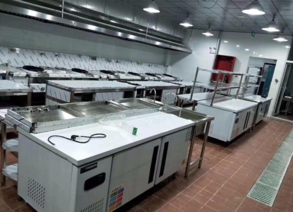 2. 厨房设备: 排风管道、排烟设备、连续油炸机、翻转锅、自动炒锅、刀板杀菌柜、米饭生产线、餐具浸泡槽、操作台、风力烤线、 点烤箱、洗涤槽、洗涤盘、保管箱、储存柜、存放架、餐车、炊具五金架、杆、钩、餐具五金架、杆、钩、调料盒、调料箱、调料架、炊具架等。