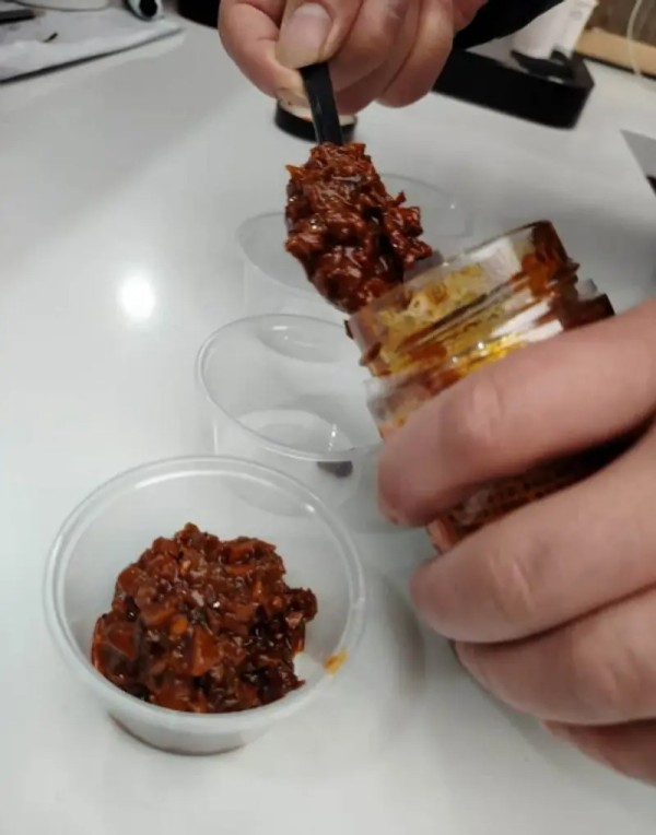 据了解,精诚辣酱有着独特的配方。它以非遗传人的古法配方为基础,在传统工艺的底蕴之上,融入了来自云南松茸的山野清香,以及潮汕橄榄菜的浓郁海洋风味。制作过程更是十分考究,需经过长达 12 小时的文火慢熬,才能最终形成这琥珀色的浓稠酱料。每一口下去,舌尖都能感受到丰富的层次,香菇、牛肉、芥菜等食材的味道与醇厚的豆豉香完美融合,咸甜适中,好吃到让人欲罢不能。