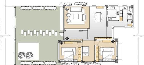平面布置图,从室外穿过长廊走向室外。