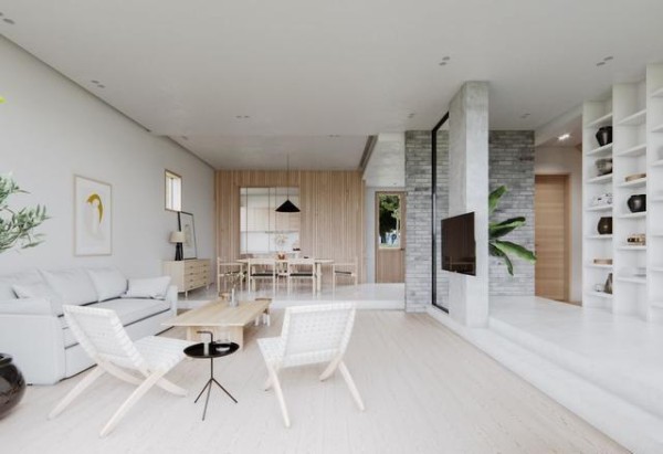 客厅下沉式设计,利用高度差将空间巧妙地隔离出来,打破常规让空间更加多元化。简单的家具造型,温润的材质搭配,自然静谧。采用无主灯设计,统一高度差视觉效果更美观。