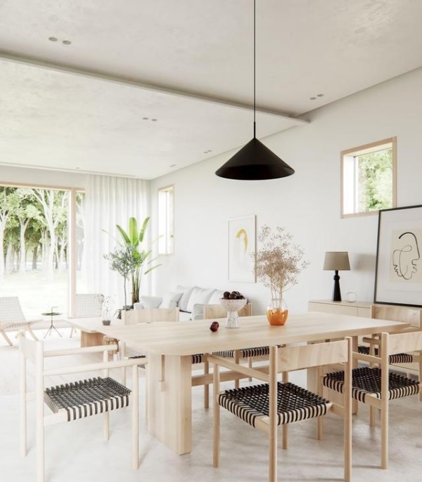 餐厅自然实用,长条餐桌不仅方便多人用餐,还可以提高居家互动和亲子娱乐效果。一盏黑色悬挂吊灯,多了一份简洁大气。合理的尺寸设计,让灯光下的食物更有吸引力。