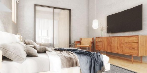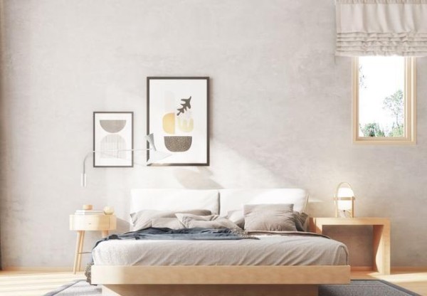 卧室简洁自然,浅色调的运用,让整个空间多了一份清爽感。舍弃传统靠背床铺,选择了无靠背低矮造型的,更符合卧室整体格调。玻璃门和帘子结合做隔断,保持通透和私密效果。