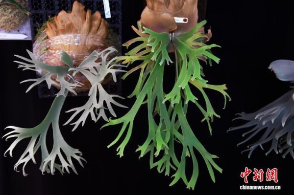 2025年8月,浙江桐乡,挂在墙上的鹿角蕨宛如“会呼吸的壁画”。孙杨洋 摄