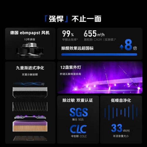 超强除醛能力:多维空气超感系统,彻底消灭有害气体。 APP智能操控:随时随地掌控空气质量,确保生活环境清新舒适。 低噪音运行:低至33dB的静音设计,给你宁静的办公和休息空间。 适合人群:关心家庭健康的父母、爱护宠物的小伙伴及需要舒适办公环境的职场人士。一句话总结:为家庭和办公室提供安全洁净的空气,让每一口呼吸都安心。
