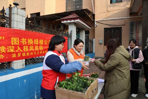 为进一步宣传弘扬绿色发展理念,引导广大村民群众树立勤俭节约、绿色低碳、文明健康的行为习惯和生活方式,培育和美乡风,助力“百千万工程”。近日,波罗镇妇联、镇新时代文明实践所共同开展了“书香换花香”图书换绿植公益活动,鼓励村民群众拿出家中闲置的图书换绿植,既让旧书焕发新能量,又让生活充满绿意。