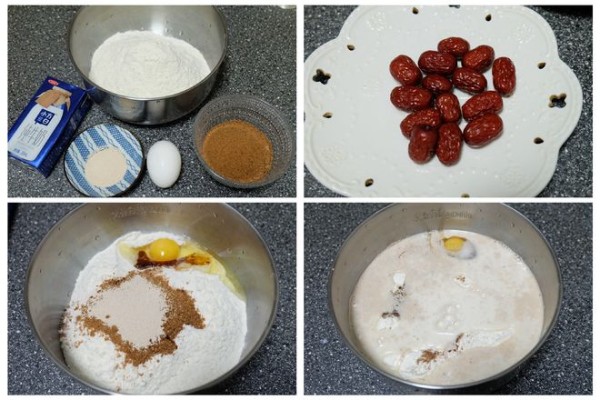 【食材表】:红糖40g、红枣适量、普通面粉300g、牛奶200g、鸡蛋1个、耐高糖酵母粉3g;