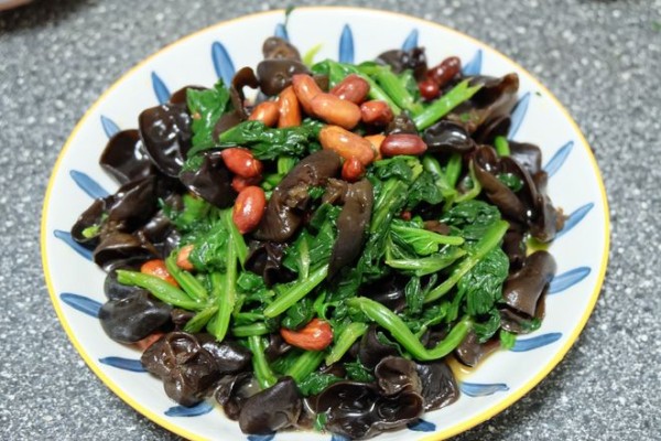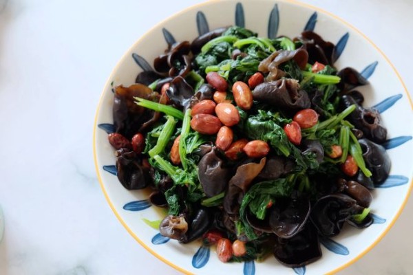 【菠菜木耳拌花生米】