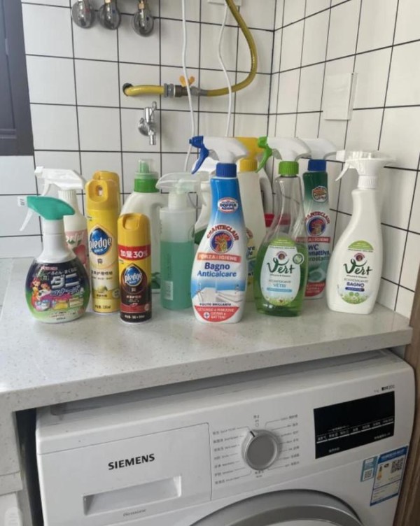 打扫卫生间免不了用上洁厕灵、消毒液这类清洁剂。