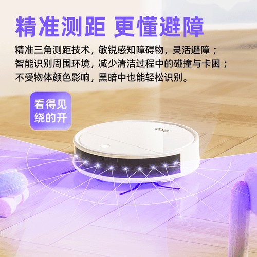 OKP K5Pro扫地机器人采用了精准的三角测距技术,实现智能避障,确保不会碰撞家具,同时其真空吸口设计有效防止毛发缠绕,特别适合养宠家庭使用。