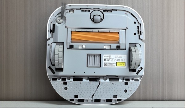 而机器人背面的橙黄色胶条,则是防缠胶刷。这一设计巧妙地解决了毛发缠绕的问题,让用户不再为宠物毛发或家庭灰尘的清理而烦恼。无论是在地毯上还是在硬地板上,防缠胶刷都能有效地将毛发梳理并收集起来,确保家居环境的整洁。