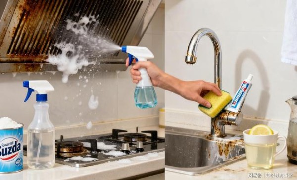 厨房是油污重灾区,尤其是抽油烟机和灶台,长期积累的油垢往往难以。这时可以试试 “小苏打 + 白醋” 的黄金组合:先将小苏打调成糊状,均匀涂抹在油污表面,静置 15 分钟后,用喷壶喷洒白醋,两者发生化学反应会产生大量气泡,能轻松溶解油污,最后用抹布一擦就干净。对于水槽缝隙的污垢,用旧牙刷蘸取牙膏擦拭,借助牙膏的研磨成分,能快速去除顽固污渍,还能让水槽恢复光亮。