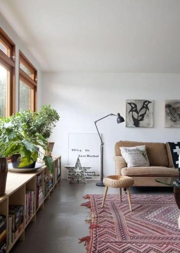 也可以选择成品的矮书柜,上侧养绿植陶冶情操、下侧储存书籍,小生活别提多惬意了。