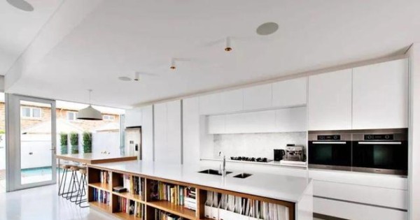 岛台书架这里必须强烈推荐,岛台自身宽大,可当书桌使用,下侧空间做成书架可囤放N+1本书籍,这番操作不论在哪里展示绝对时尚霸气。
