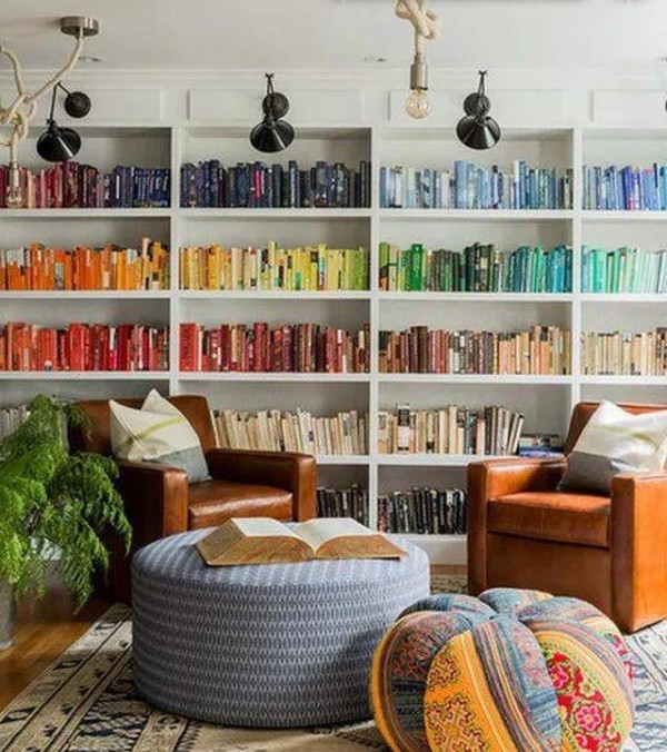 ④还可以根据书籍的颜色分类哦 ,这种分类法超级适合“患有”强迫症的你哦!