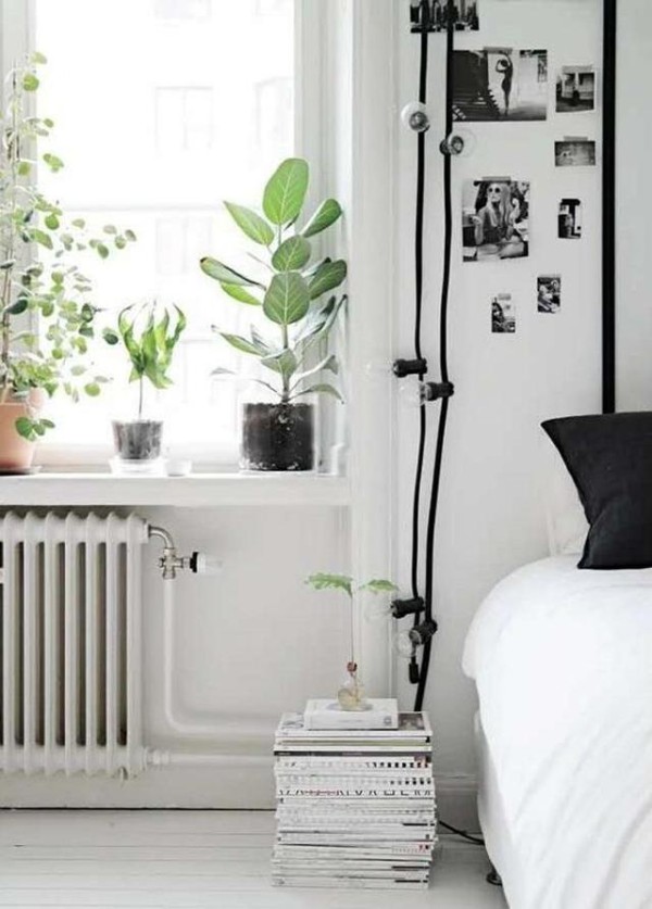 喜欢睡前一读的小伙伴,可以把自己平时喜欢的睡前读物摞列床边,这样拿书、放书更方便,平时水杯等小物件还可以放在上面,别提多省事了。