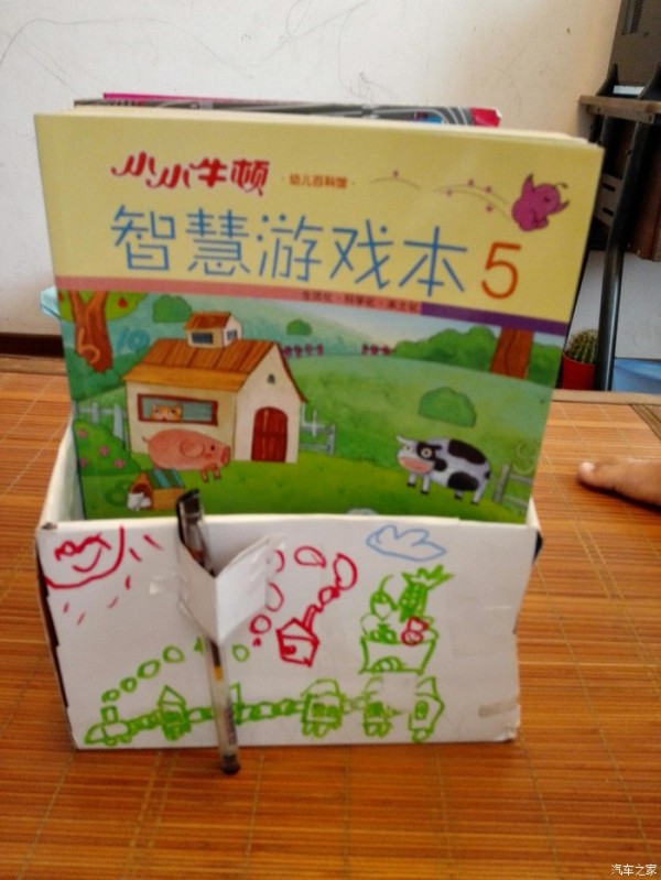 儿子跟着小姐姐学了一门手艺,用鞋盒制作书架。回到家后,儿子迫不及待的,让我帮他找个鞋盒,他要亲自动手做,我乐得赶忙找来盒子,看着他一步步亲手制作,偶尔遇到困难时,我辅助指点下,竟然也顺利完成了,效果很好啊。