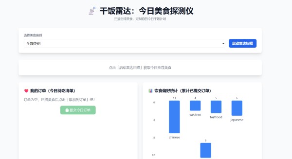 前言打工人的每日灵魂拷问:「中午吃啥?晚上吃啥?」为了解决这个世纪难题,我用 HTML+CSS+JavaScript 写了个「干饭雷达」美食推荐小工具 —— 支持分类随机选餐、订单管理、饮食偏好统计,还能本地存储记录你的干饭历史!今天就带大家拆解这个项目的实现思路~