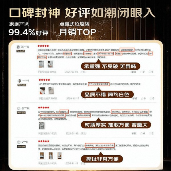 加厚耐用材料:全新升级的加厚材料大幅提升了承重能力,有效减少了撕裂和破漏的风险,无论是厨余还是其他垃圾,都能妥善处理。