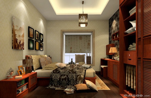 中式风格拥有的就是赋予历史长河的优美文化和东方韵味的那份细腻和质朴,这个装修风格卧室比较适合喜欢传统文化的人,买上几套古典家具,再弄上屏风什么的,中国味儿十足。