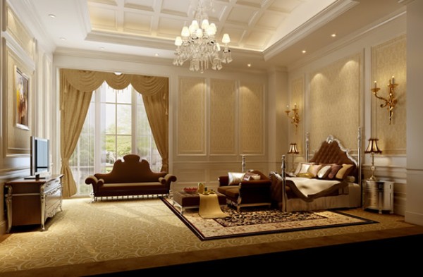 尽量不要使用装饰性太强的悬顶式吊灯,它不但会使你的房间产生许多阴暗的角落,也会在头顶形成太多的光线,躺在床上向上看时灯光还会刺眼。最好采用向上打光的灯,既可以是房顶显得高远,又可以使光线柔和,不直射眼睛。除主要灯源外,还应设台灯或壁灯,以备起夜或睡前看书用。另外,角落里设计几盏射灯,以便用不同颜色的灯炮来调节房间的色调,如黄色的灯光就会给卧室增添不少浪漫的情调。