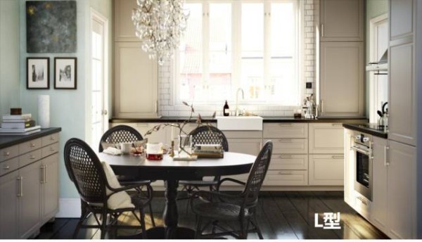 小空间的厨房更需要布置的巧思。U型设计不占用空间,而一转身又多了一个工作台,厨房外的人也能在此搭把手啦。