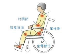 坐位的长辈,上肢通常肩胛骨部位,肘关节部位,以及尾椎骨部位好犮,下肢坐骨部位,胭窝部位以及足底部位是好发褥疮的部位;