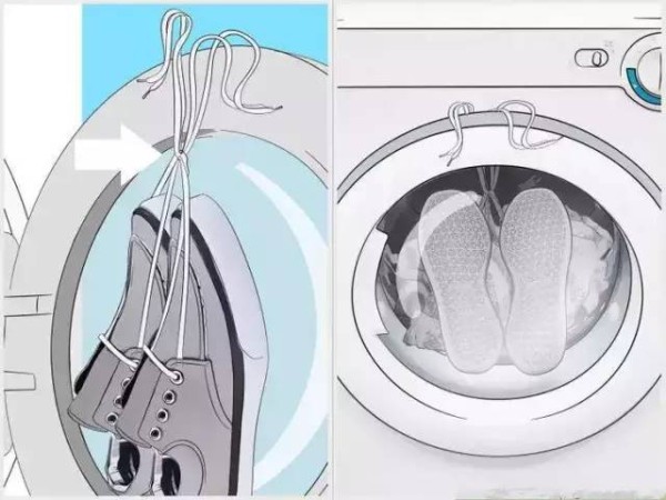 将鞋子清洗干净后,放到烘干机里低温烘1小时即可。有个小技巧要注意:用鞋带固定鞋孔的底部,两只鞋的鞋带打结后,将多出的鞋带放到烘干机外,以免干燥机烧坏鞋底。