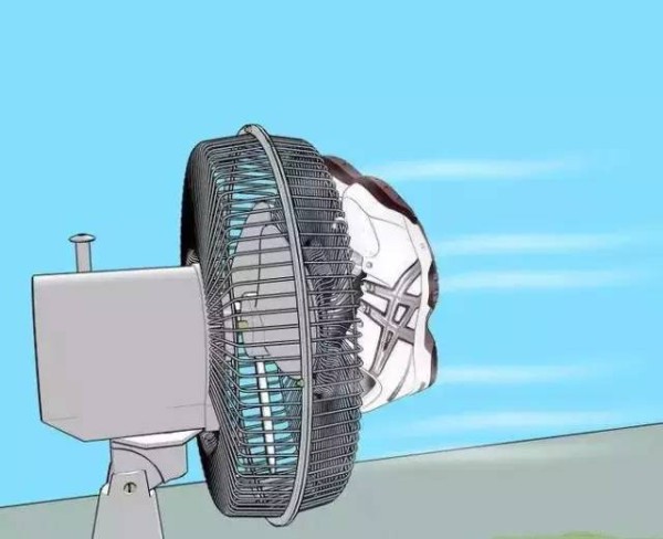 挂在S勾上,然后打开风扇对着吹即可。1小时左右鞋子就能被吹干,比放在外面晾晒要快速的多。