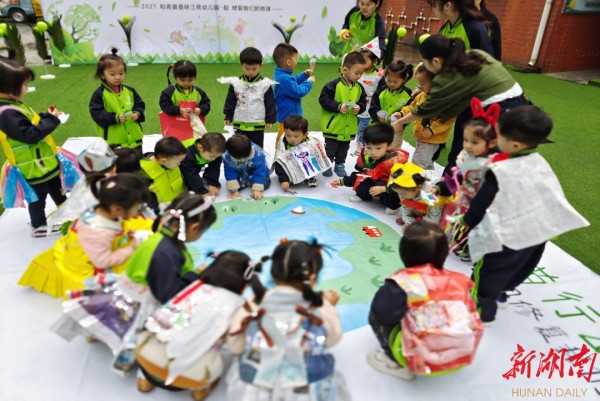 新湖南客户端4月22日讯(通讯员 盛芷菡)为了提高幼儿绿色环保意识、倡导低碳环保的生活理念,进一步提高幼儿的动手、创造力和想象力,4月22日上午,长沙市开福区芙蓉北路街道金泰路社区党委联合青苗荟幼儿园举行了“环保时装秀,绘垃圾分类,低碳地球日”的主题活动。