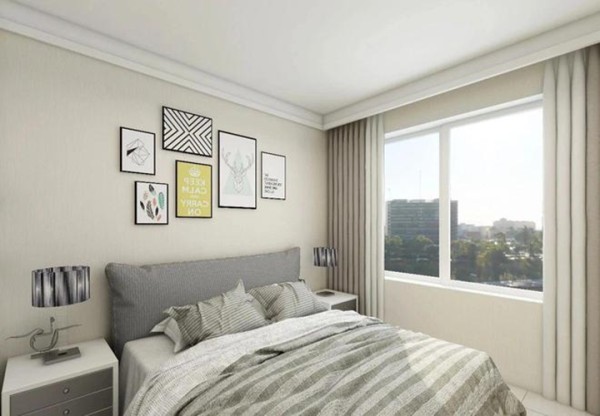 窗户的上面,最好打造窗帘盒子,遮光效果好,后期安装电动窗帘也方便。