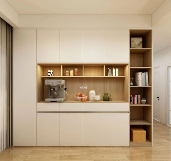 柜子千万不要买成品,虽然价格便宜,但是收纳空间小,而且视觉效果不好看。也不要找木工打造,因为木工用的大多数是生态板,比较不环保。