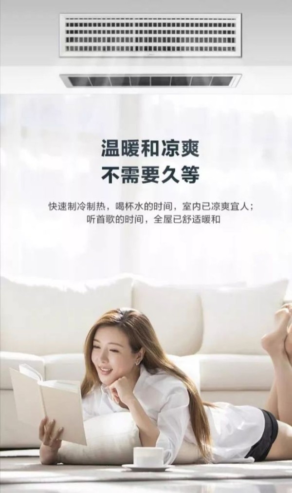 那么这时该怎么办呢?其实很简单,选用中央空调就行啦!室内机藏于天花之中,只留一个风口在外,风口可以根据装修改变形状和颜色,与室内装潢完美搭配,既不破坏装饰整体美感,又能确保室内暖通环境。