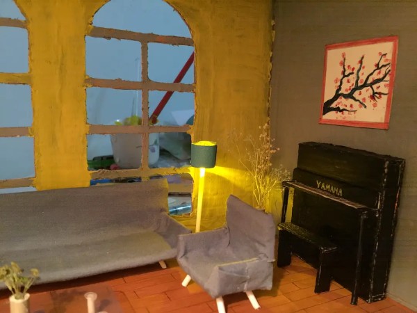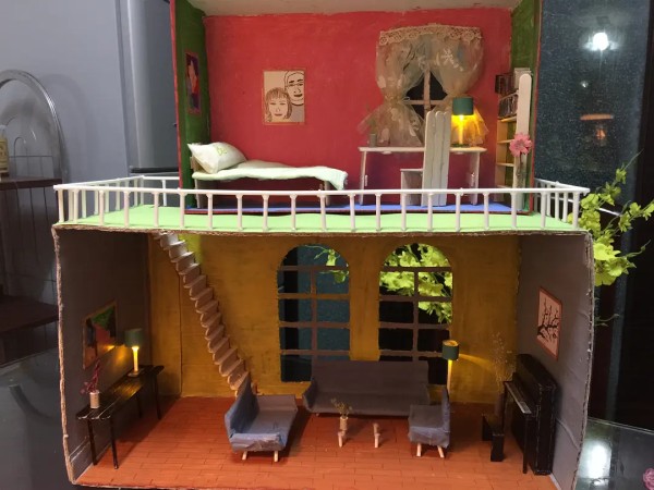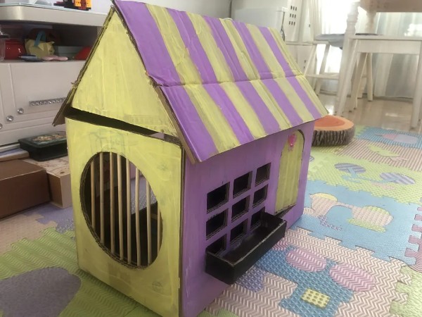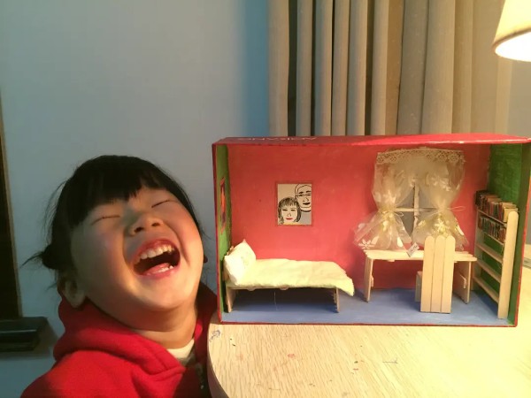 我很羡慕我们的祖先自己搭茅草屋、建木板房。在我们还在租房的时候,我很向往有一个自己的家。所以我用纸壳箱做了各种小房子。