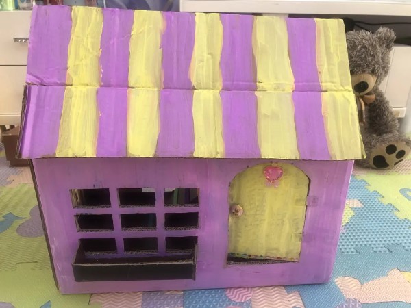 Bella把小屋粉刷成黄色和紫色,挺漂亮的。