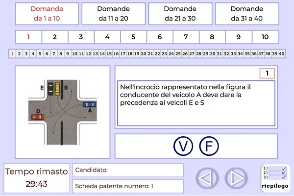 意大利理论考试题目一共7000多道题目,从中选出40道题目,在30分钟内做完,选出对(Vero)或错(Falso),最多只能错4道题。