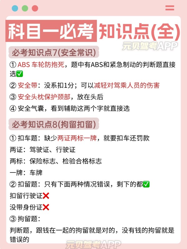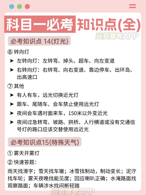 大家要利用好元贝驾考里的「知识点」功能,先集中记知识点,再去练题。另外,在「试题专辑」中,我们也给大家整理了一些常考易错题的合集,大家要多多练习哦~