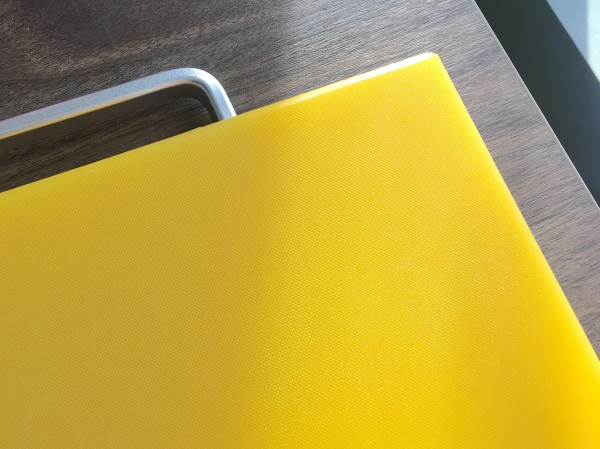 相信很多人和我一样,十分介意砧板留下刀印。IUPILON在这方面表现算是比较好的,不太容易留刀痕,但它毕竟是块树脂砧板,剁肉砍骨、切菜切久了,难免会有刀印。好在它容易清洗、自身材质也不发霉,即使出现刀印,也不会严重影响清洁卫生。