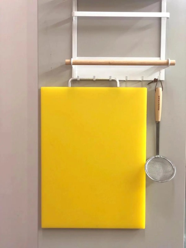 IUPILON砧板收纳起来也很方便,一端有银色把手,可以用于移动或悬挂砧板。