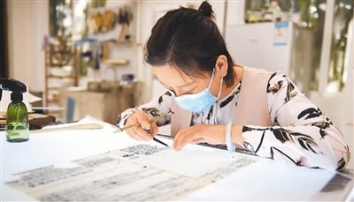 安徽博物院文物科技保护中心纸质文物修复室的工作人员对古籍文物进行修复。新华社记者 周牧摄