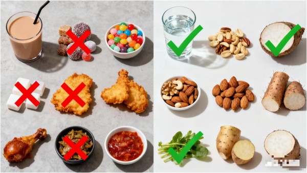 避开高糖、高油、高盐食物,减少身体负担。少吃奶茶、糖果、油炸食品,避免血糖波动、脂肪堆积;少喝烈酒、少碰重口腌制品,保护肝肾与肠胃;拒绝熬夜吃宵夜,尤其避开高油高碳水宵夜,减少脏腑代谢负荷,降低身体不适感。