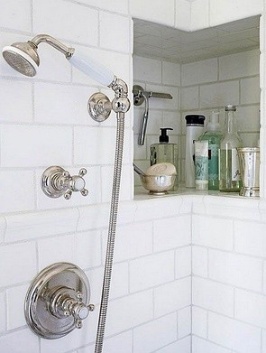 建议在装修浴室前多做一些功课,就像这样嵌入墙内的空间是不是很赞,你可放一些肥皂、沐浴露、洗发水等等日常用品。