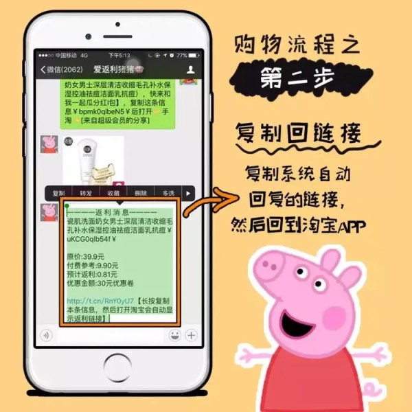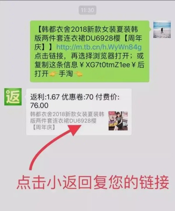 链接粘贴发给淘宝返利机器人