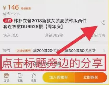 第一步:打开电商平台(淘宝/天猫/京东/唯品会等APP),挑选完心仪的商品后,点击页面右上角的“分享”,