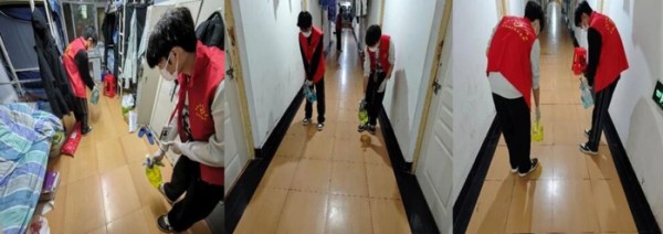 志愿者以不留死角为原则,对寝室的各个角落,包括寝室、走廊、卫生间等区域进行了全面细致的清洁消毒。喷洒消毒液后,小组成员又进行30分钟的开窗通风处理,在消杀过程中,志愿者还对寝室卫生状况进行了检查,同时,他们向同学们宣传了卫生防病毒知识,强调了保持寝室清洁、通风良好的重要性,鼓励大家积极配合学校工作,共同维护校园公共卫生安全。