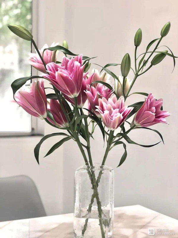 把鲜花插入花瓶,