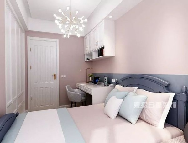 卧室的照明要求不多,但要注意,卧室不宜采用向下射的灯具,宜用照顶的灯光,这样会更加温馨。